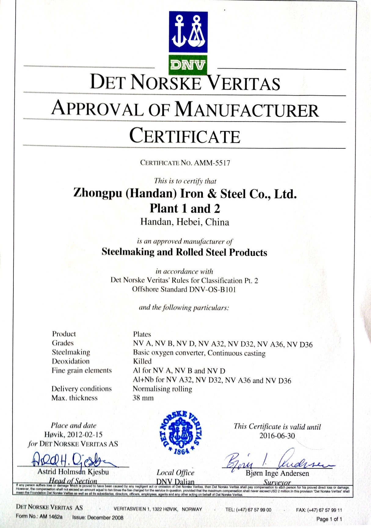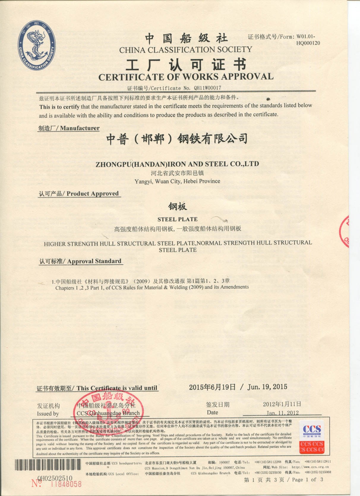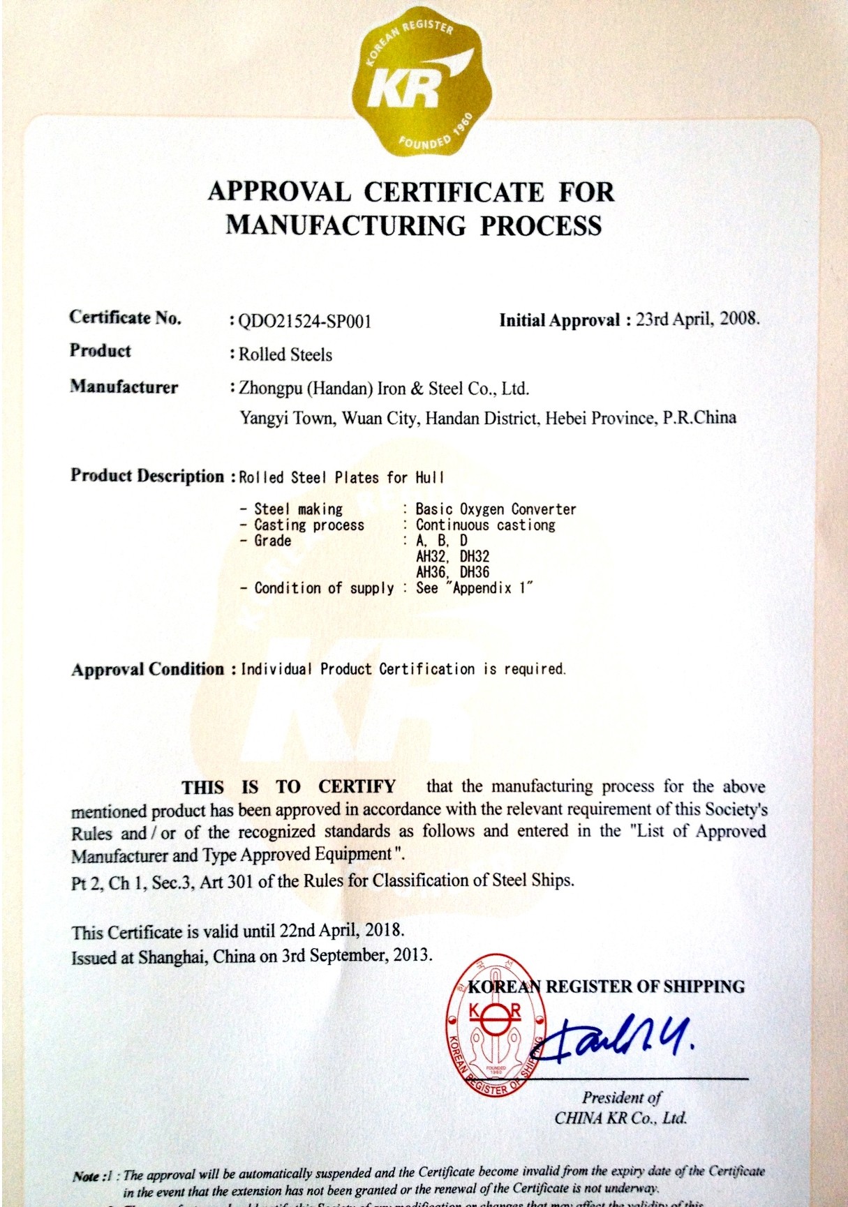 船級(jí)社證書(shū)