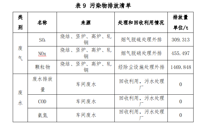 ? 生產(chǎn)過程中排放的主要污染物為廢氣及廢水兩類,廢氣中主要?污染物包括二氧化硫、氮氧化物、顆粒物。廢水中主要污染物包括COD?和氨氮。主要污染物排放統(tǒng)計(jì)見表?9。