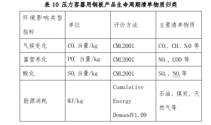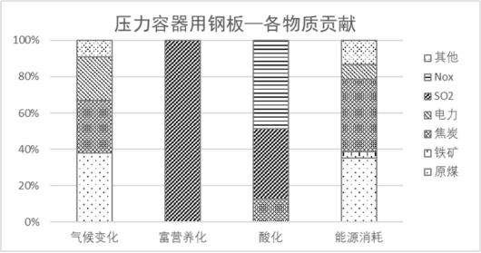 ? 壓力容器用鋼板的環(huán)境影響采用氣候變化、富營養(yǎng)化、酸化、能源消耗共四項(xiàng)指標(biāo)進(jìn)行評(píng)價(jià)。