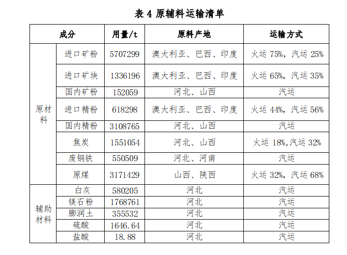 ? 原輔料成分、用量及運(yùn)輸方式見表?4。