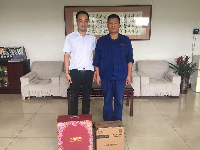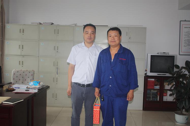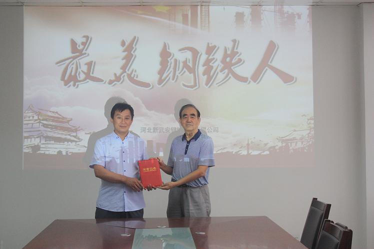張勝利在接受新武安鋼鐵集團(tuán)董事長(zhǎng)萬喜河頒獎(jiǎng)時(shí)的照片