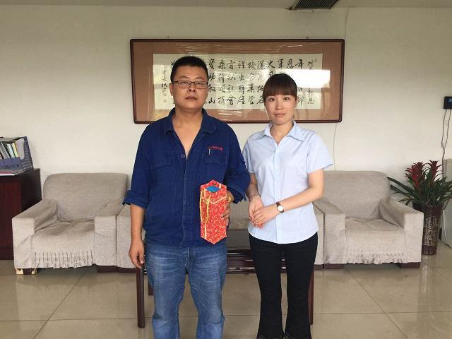 ?,F(xiàn)利(“最美鋼鐵人”評(píng)選活動(dòng)優(yōu)秀獎(jiǎng))在領(lǐng)獎(jiǎng)時(shí)的照片