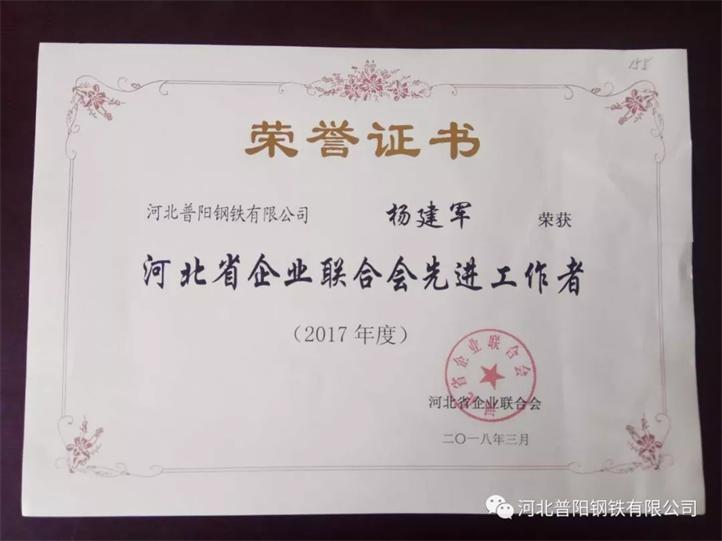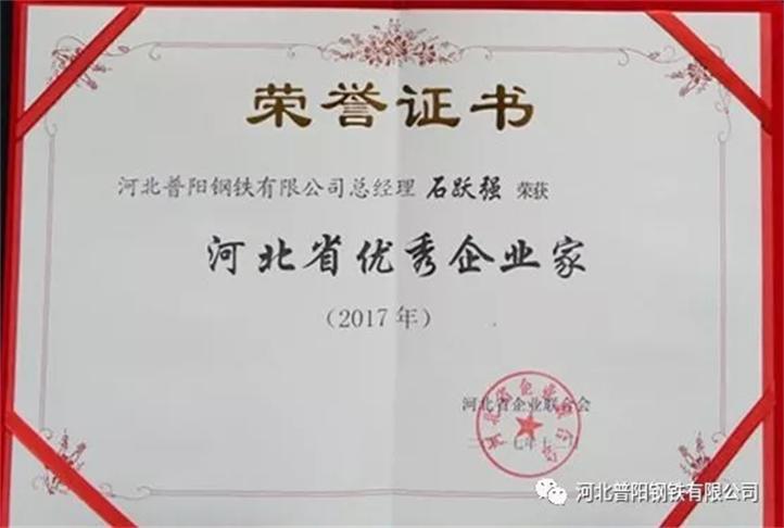 近日,河北省企業(yè)聯(lián)合會表彰全省“明星企業(yè)”大會在石家莊市中山賓館召開,我公司副經(jīng)理王瑞華應(yīng)邀出席了會議。會上,我公司被評為“河北省明星企業(yè)”,是為數(shù)不多的鋼鐵企業(yè)之一,彰顯了我公司的實力和競爭力。與此同時,我公司總經(jīng)理石躍強被評為“河北省優(yōu)秀企業(yè)家”,辦公室主任楊建軍被評為“河北省企業(yè)聯(lián)合會先進工作者”。