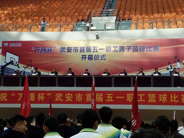 4月28日上午,公司副總經理王瑞華率領公司籃球隊參加了“萬騰杯”武安市首屆五一職工男子籃球賽開幕式。