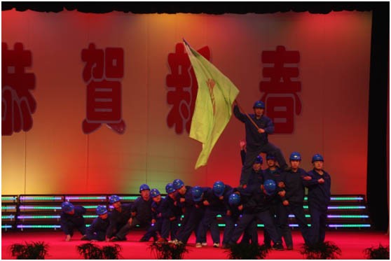 由于在“大舞臺(tái)”上演出,主持人增加到了6人,同時(shí)參演人數(shù)也創(chuàng)下了歷年來(lái)的新高。自編自導(dǎo)的舞蹈《鋼鐵工人》中,16名身穿工作服,頭戴安全帽的演員,以舞蹈的形式再現(xiàn)了鋼鐵工人火紅的勞動(dòng)場(chǎng)面,體現(xiàn)了我們鋼鐵工人的沖天干勁與如火的激情,贏得了觀眾熱烈的掌聲。