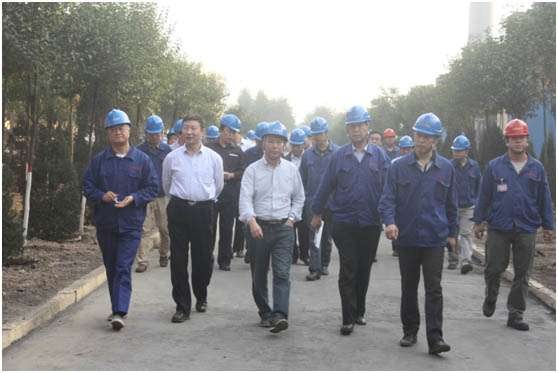 10月11日下午,國(guó)家工信局原材料司鋼鐵處處長(zhǎng)張德琛一行到我公司檢查指導(dǎo)工作。圖為董事長(zhǎng)與總經(jīng)理石躍強(qiáng)、副總經(jīng)理陳丹峰、閆存喜等公司領(lǐng)導(dǎo)陪同張德琛視察二鋼廠時(shí)的照片。