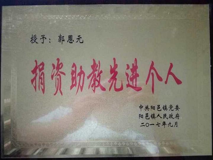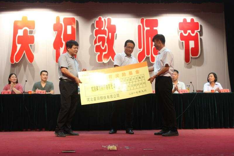 會(huì)上,優(yōu)秀教師代表做了典型發(fā)言,對(duì)捐資助教先進(jìn)單位、先進(jìn)個(gè)人及優(yōu)秀教師進(jìn)行的頒獎(jiǎng)。我公司榮獲“捐資助教先進(jìn)單位”,董事長(zhǎng)郭恩元榮獲“捐資助教先進(jìn)個(gè)人”??偨?jīng)理助理石現(xiàn)英代表公司為陽(yáng)邑鎮(zhèn)捐贈(zèng)了教育獎(jiǎng)勵(lì)基金。