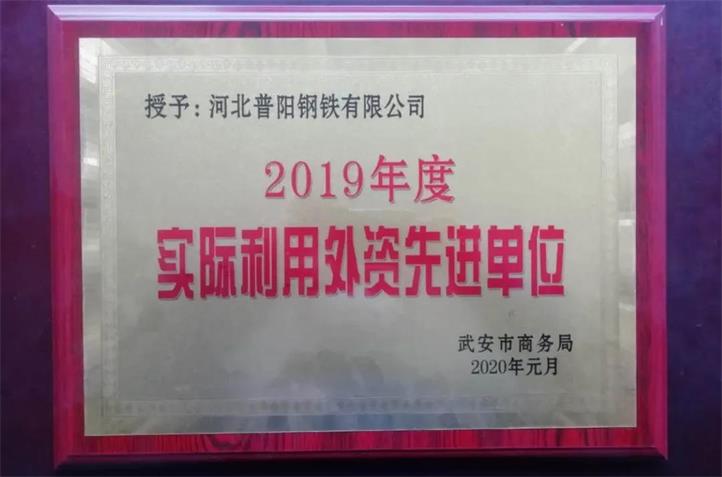 日前,河北普陽鋼鐵集團收到市商務(wù)局頒發(fā)的榮譽牌匾,2019年面對嚴峻的外貿(mào)形勢,普陽鋼鐵集團深入踐行“國內(nèi)國外兩個市場都要占領(lǐng)”的經(jīng)營戰(zhàn)略,努力開展出口貿(mào)易,在推動我市引進外資、加強對外貿(mào)易方面作出了突出 成績,鑒于此,河北普陽鋼鐵有限公司、中普(邯鄲)鋼鐵有限公司被市商務(wù)局授予“2019年度實際利用外資先進單位”榮譽稱號。