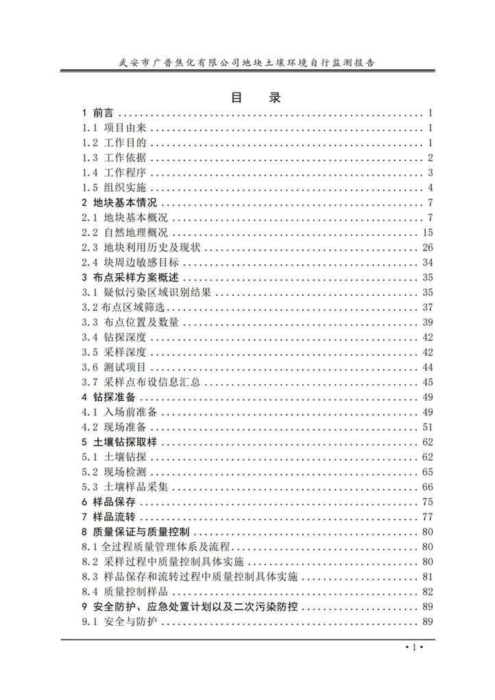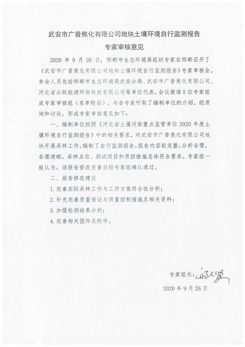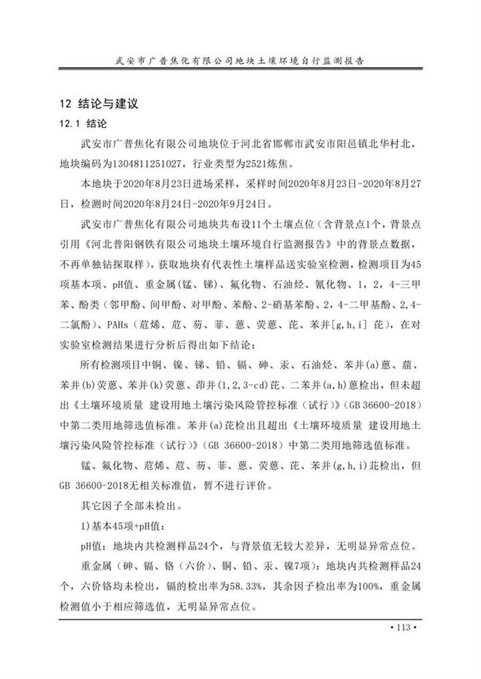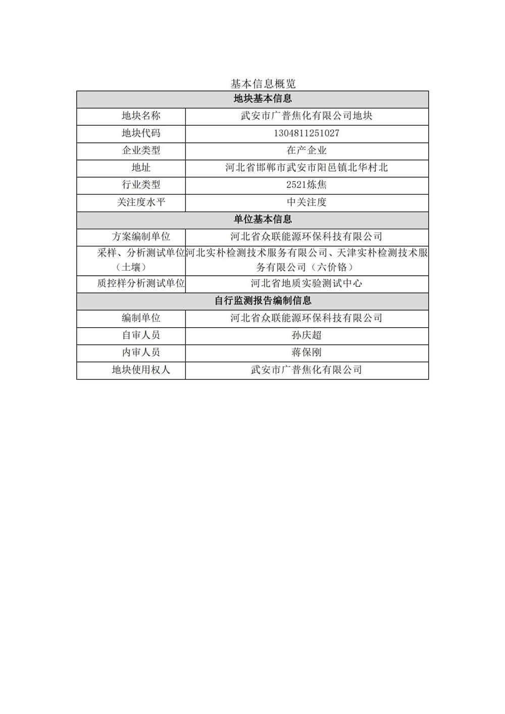 武安市廣普焦化有限公司地塊土壤環(huán)境自行監(jiān)測(cè)報(bào)告