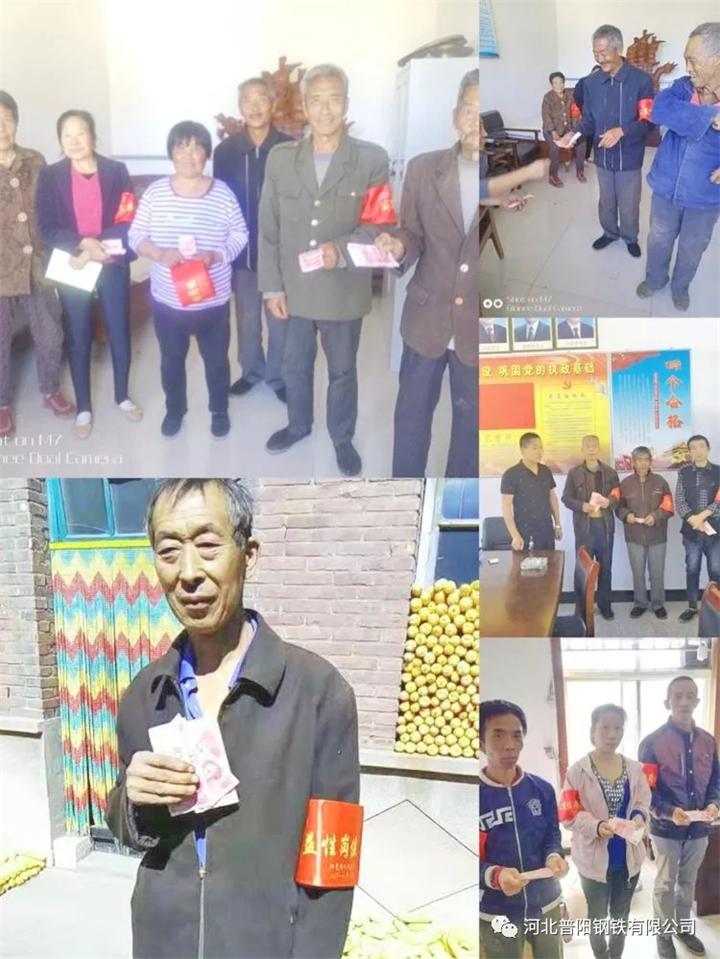 國慶節(jié)當(dāng)天,陽邑鎮(zhèn)在柏林前街村委會舉行精準(zhǔn)脫貧公益性崗位第一個(gè)月工資發(fā)放儀式。陽邑鎮(zhèn)黨委書記王增平、鎮(zhèn)長周現(xiàn)偉、民政主管郭奮強(qiáng)、普陽鋼鐵“精準(zhǔn)扶貧辦”主任楊建軍、24個(gè)村支部書記、公益性崗位人員代表共計(jì)50余人參加了發(fā)放儀式。