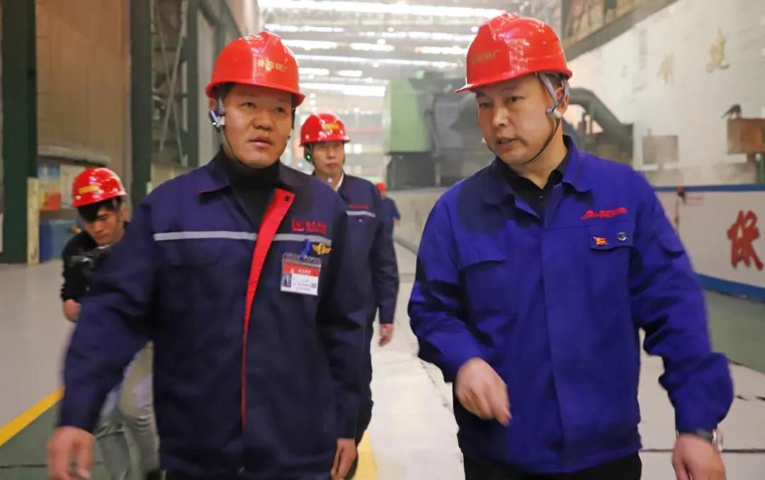 座談結(jié)束后,石總陪同丁董一行參觀了普陽沙盤模型展、風(fēng)雨四十年廠史展,并到二期中板生產(chǎn)車間實地調(diào)研。
