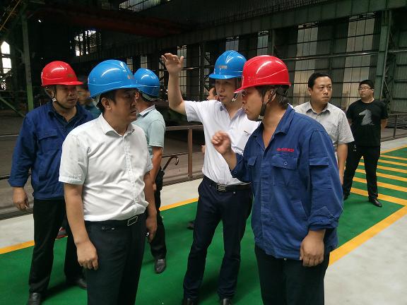 7月28日上午,武安市政府副市長馬曉斌、環(huán)保局張文慶、陽邑鎮(zhèn)楊貴寶等領(lǐng)導(dǎo),到我公司調(diào)研2017年大氣污染綜合整治項目實施進(jìn)度情況。公司總經(jīng)理石躍強(qiáng)、副總經(jīng)理李成安、環(huán)??崎L李劍春陪同調(diào)研。圖為公司總經(jīng)理石躍強(qiáng)陪同馬曉斌副市長參觀中厚板車間美化、亮化工程改造情況。