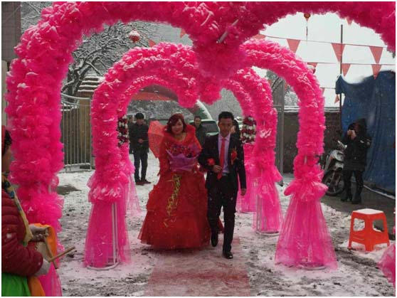 工作人員冒雪為氣管站閆家慧舉行婚慶